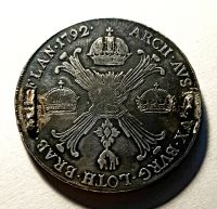 | Историческая справка | Редкий талер Леопольда II 1790-1792(император Священной Римской Империи), так как он правил очень короткое время, то талера Леопольда II встречаются редко, еще и в 1790, и в 1792 чеканили монеты с другими императорами. |