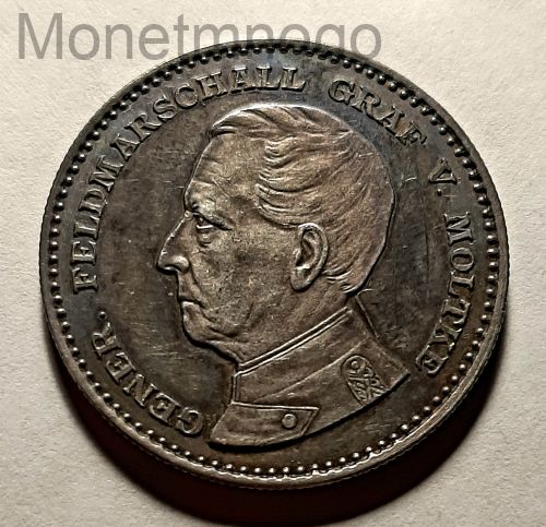 2 марки 1890 Пруссия Мольтке UNC Серебро Медаль Германия Россия